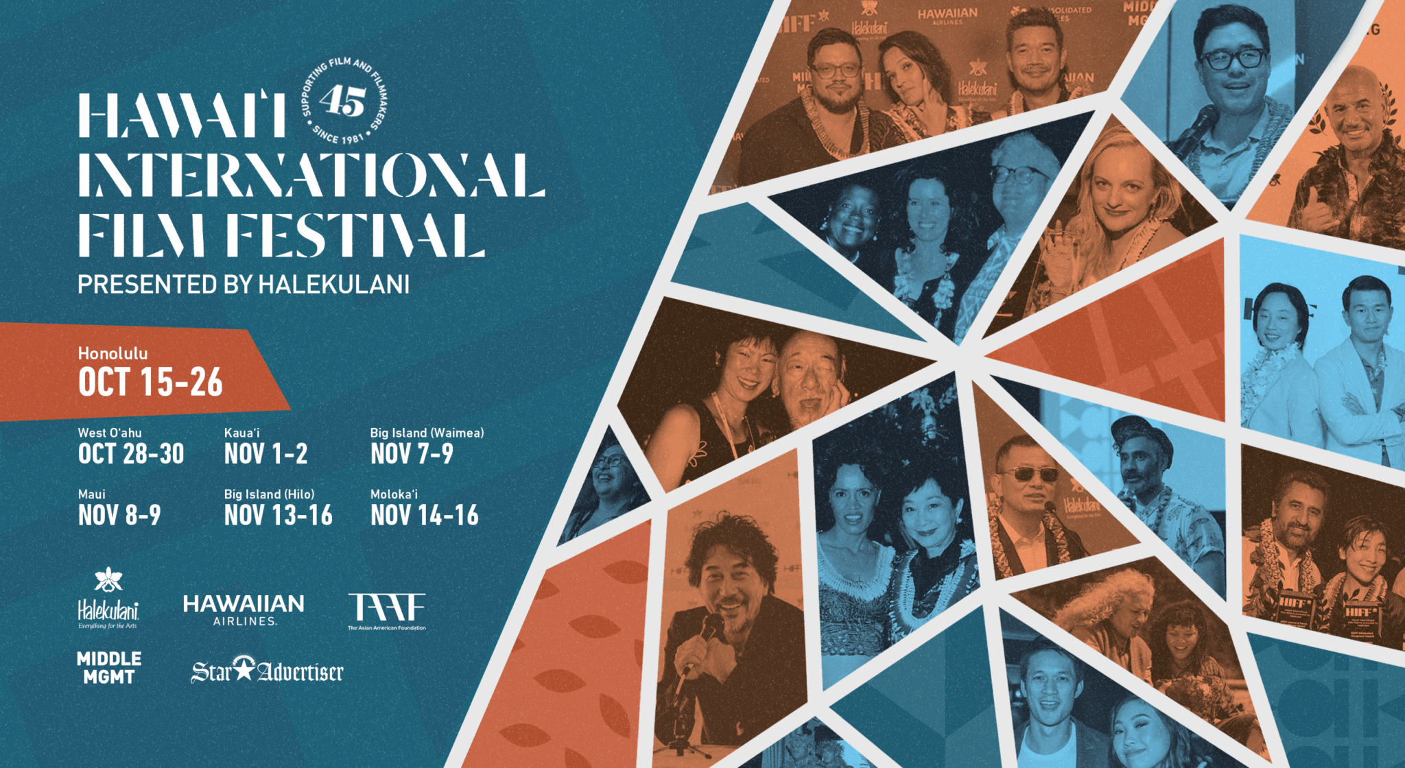Join us for the 45th Annual Hawaiʻi International Film Festival presented by Halekulani, Opening Reception at Capitol Modern. This kick-off event will feature an exciting introduction to the Fall Festival program and and opportunity for HIFF's community supporters to come together to celebrate 10 days of films and festivities. RSVP and more info coming soon.
