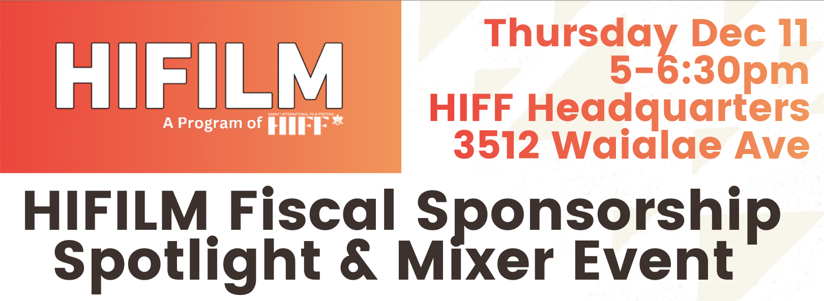 HIFILM Fiscal Sponsorship Spotlight & Mixer Event | HIFF | Hawai'i International Film Festival
